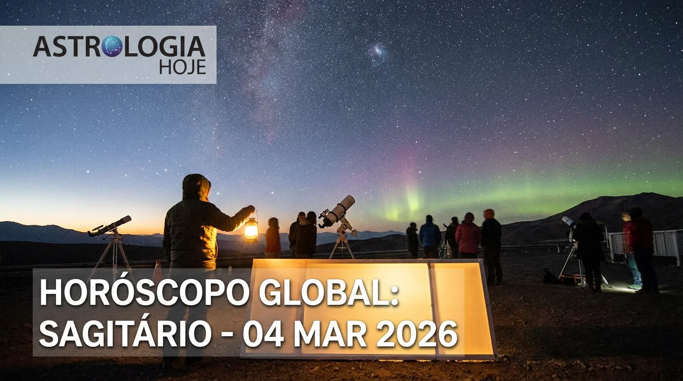 Confira a previsão completa para Sagitário em 04 de março de 2026. Insights sobre amor, carreira e espiritualidade com a sabedoria dos astros para o seu dia.